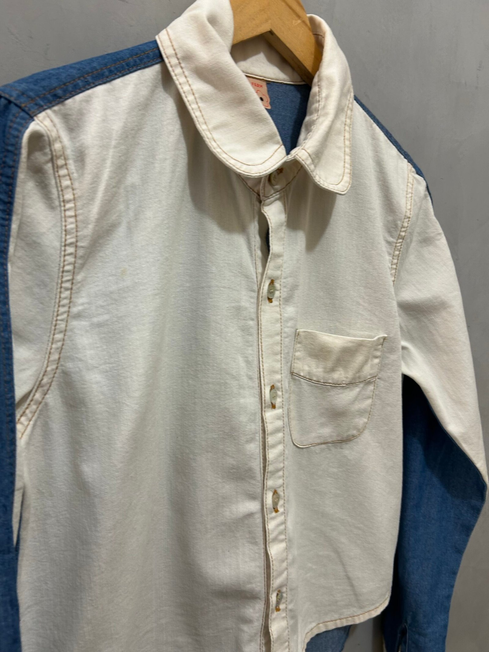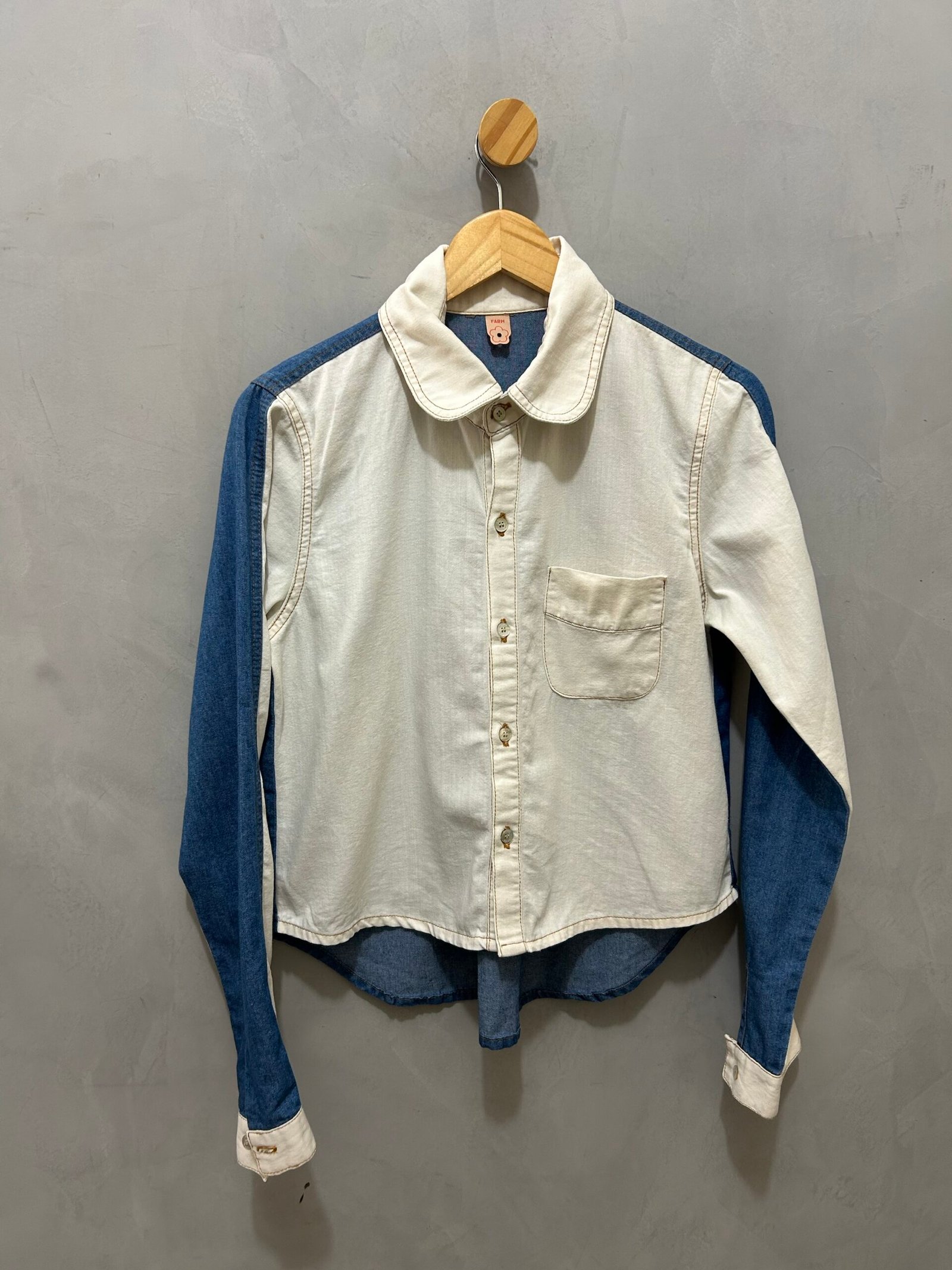 Camisa jeans, com lavagem clara na frente.